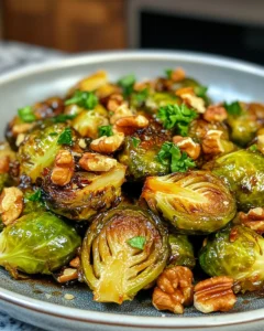 This recipe was inspired by the seasonal markets of Europe, where roasted vegetables and nuts have long been a staple during harvest festivals. The rich, slightly tangy balsamic vinegar pairs beautifully with the earthy Brussels sprouts, while walnuts add texture and a subtle nutty flavor that makes every bite memorable. Whether you’re cooking for yourself, your family, or friends, this dish promises to become a favorite. Its simplicity and elegance make it a versatile recipe that complements any meal, from roasted chicken to a hearty grain bowl.
