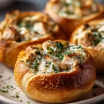 Classic Chicken Alfredo Garlic Bread Bowls – Rich, Creamy Goodness