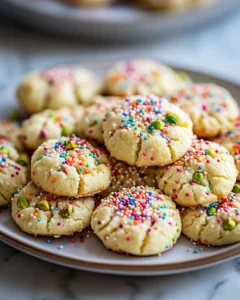 Inspired by childhood memories of baking in the kitchen during special occasions, this recipe brings a modern twist to a beloved tradition. The combination of soft, melt-in-your-mouth dough with a colorful and crunchy exterior turns a simple cookie into a centerpiece-worthy delight. Whether you’re a seasoned baker or trying spritz cookies for the first time, this recipe is approachable, fun, and guaranteed to impress.