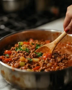 Heat olive oil in a large pot over medium heat. Add ground beef and cook until browned, about 6–8 minutes. Drain excess grease if needed.