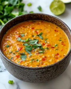 The idea for this soup came from a love of Thai-inspired flavors combined with the practicality of weeknight cooking. Red lentils cook quickly and soak up flavor beautifully, while coconut milk adds richness without heaviness. This recipe has become a weekly staple for many home cooks because it balances comfort, nutrition, and bold taste in the most effortless way.