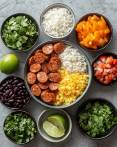 The smoky sausage brings warmth, the beans provide creaminess and heartiness, and the rice ties everything together into a cohesive, flavorful bowl. Every bite offers balance—savory, slightly spicy, fresh, and comforting.