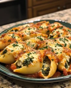 A warm, cheesy, and comforting dish, perfect for cozy weeknight dinners or festive family gatherings. These stuffed shells combine creamy ricotta, fresh spinach, and a blend of cheeses baked in savory marinara sauce, making every bite irresistible. Inspired by traditional Italian cuisine, this recipe brings a touch of elegance to your table while remaining easy to prepare.