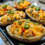 Twice-baked potatoes have long been a comfort food favorite, and this southwest version elevates the classic by combining tender chicken, colorful bell peppers, and spicy, melty Pepper Jack cheese. The second bake allows the cheese to become gooey and slightly golden, creating a rich and indulgent texture that contrasts beautifully with the fluffy potato base.