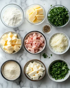 Chicken Cordon Bleu traditionally consists of chicken breasts stuffed with cheese and ham, then breaded and baked or pan-fried. This casserole version captures those beloved flavors — tender chicken, savory turkey ham, Swiss cheese, and creamy sauce — but simplifies the method into a baked dish layered in a casserole pan.