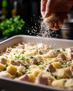 Alternatively, you may bake seasoned chicken breasts at 375°F (190°C) for 25–30 minutes, cool slightly, then dice before assembling the casserole. Using pre-cooked chicken guarantees even texture and better overall flavor balance.