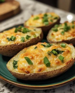 Garnish and serve: Remove from the oven and let the potatoes cool for 5 minutes. Sprinkle with thinly sliced green onions before serving. These twice-baked potatoes are best enjoyed warm and fresh.