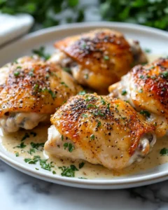 Savory Creamy Oven Baked Chicken Thighs
