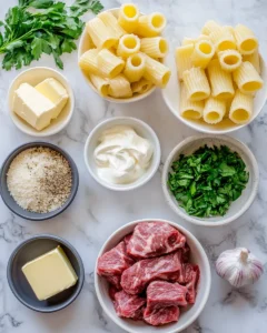 Cajun seasoning brings warmth, smokiness, and a gentle heat that enhances the natural richness of beef. Steak tips are ideal here because they cook quickly, stay tender when prepared correctly, and absorb seasoning beautifully. Rigatoni, with its wide tubes and ridged surface, captures the cheesy Parmesan sauce and small bits of steak in every bite.