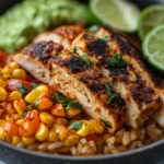 Inspired by the unforgettable flavors of classic street corn and the growing love for hearty rice bowls, this recipe brings together juicy seasoned chicken, creamy corn topping, fluffy rice, and fresh garnishes. Every spoonful delivers a balance of smoky, savory, creamy, and fresh elements that feel indulgent yet approachable. It’s a modern comfort dish that feels familiar, satisfying, and endlessly crave-worthy.