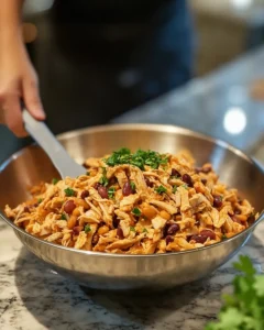 This recipe was inspired by the kind of “everyone’s welcome” casserole-style enchiladas that show up at potlucks and family parties—big pans, bold flavors, and the guarantee of leftovers. The twist here is the “loaded” approach: seasoned chicken, beans, corn, and a creamy-yet-bright filling, finished with generous toppings so every bite tastes like a full fiesta.