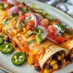 <p“Soggy” enchiladas usually come from too much liquid in the filling or letting them sit too long after being fully sauced. To avoid this, drain the black beans and corn very well, and don’t add watery salsa directly into the filling. Also, use a thicker enchilada sauce if you have the option; very thin sauce can over-soften tortillas. Baking uncovered helps excess moisture evaporate, which is why this recipe bakes without foil. Finally, let the pan rest for 10 minutes after baking. Resting allows the filling to set and the tortillas to reabsorb some sauce in a way that turns velvety rather than mushy.