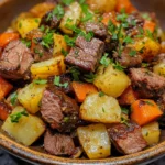 The earthy sweetness of carrots pairs beautifully with the savory richness of the beef, while the onions and bell peppers add brightness and depth. Every forkful feels rustic yet indulgent—simple ingredients transformed into something that feels special.