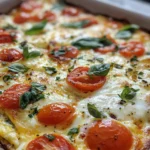 This Quick & Tasty Tomato Basil Egg Bake is the perfect combination of fresh, vibrant flavors and easy preparation. Bursting with juicy cherry tomatoes, fragrant basil, and creamy cheese, it’s ideal for a cozy brunch, a weekend breakfast, or a light dinner. Inspired by classic Italian flavors, this egg bake is simple, satisfying, and sure to become a favorite in your household.
