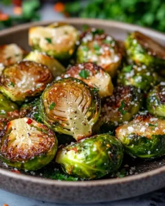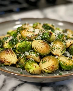 For a bright, fresh finish, drizzle the roasted Brussels sprouts with a teaspoon of lemon juice just before serving. The acidity balances the richness of the cheese and enhances the natural sweetness of the sprouts. Toss gently to combine, making sure each sprout gets a touch of the citrusy finish.