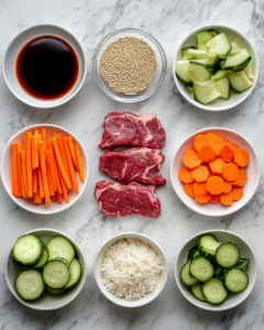 The foundation of these rice bowls starts with a deeply flavorful marinade that transforms a simple cut of steak into something tender and crave-worthy. In a medium mixing bowl, whisk together 60 ml (¼ cup) soy sauce, 2 tablespoons brown sugar, 1 tablespoon sesame oil, 4 cloves minced garlic, 1 tablespoon freshly grated ginger, 1 tablespoon rice vinegar, and ½ teaspoon black pepper. This combination creates the perfect balance of savory, sweet, and aromatic flavors that define Korean-style barbecue.