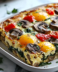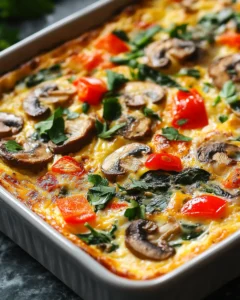There’s nothing like starting your morning with a warm, hearty dish straight from the oven. This Savory Mushroom Egg Bake brings together earthy mushrooms, tender spinach, and creamy cheese for a comforting breakfast that’s as nourishing as it is delicious. Perfect for a cozy weekend brunch, a make-ahead weekday meal, or when you simply want to serve something wholesome and satisfying, this recipe combines simplicity with flavor. Every bite delivers the kind of homemade goodness that fills your kitchen with warmth and makes every morning feel special.