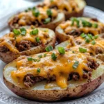 Yes! This recipe is perfect for make-ahead cooking. You can bake the potato shells, prepare the filling, and store it separately in the refrigerator for up to 24 hours before baking the stuffed potatoes. When ready to serve, fill the potato shells with the beef and cheese mixture and bake at 375°F (190°C) for 20–25 minutes, or until the tops are golden and the cheese is bubbling. This is especially useful for dinner parties or busy weeknights when you want a hearty meal ready in less time.