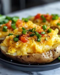 This particular variation brings a fun twist by incorporating eggs and vegetables, turning the dish from a side into a complete meal. It allows you to enjoy a familiar favorite in an entirely new way while still preserving the beloved qualities that make baked potatoes a reliable classic.